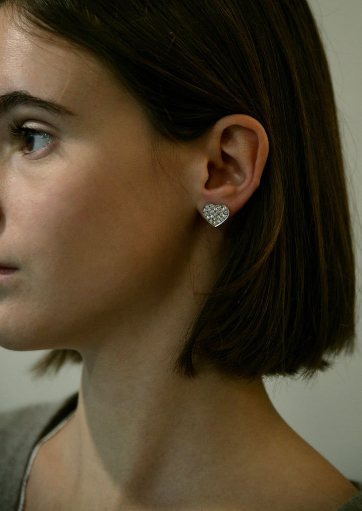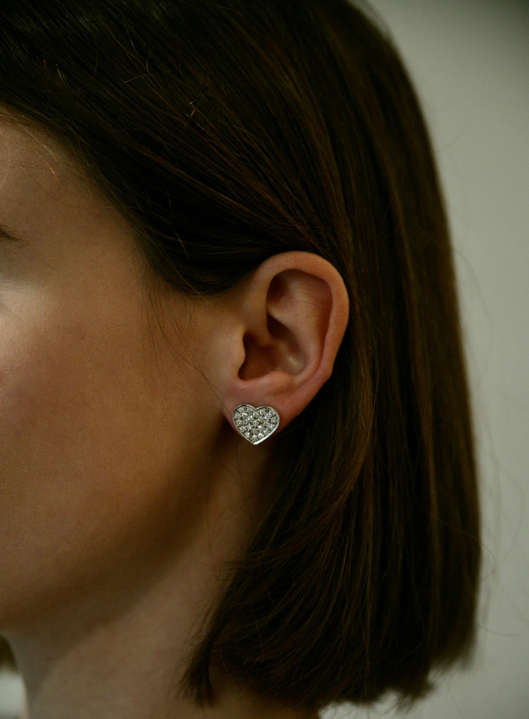 Add a touch of sparkle to your style with these refined rhodium-plated 925 sterling silver heart earrings, embellished with a brilliant pavé of zirconia stones. Their timeless, romantic design brings effortless elegance to any look, from everyday wear to special occasions.