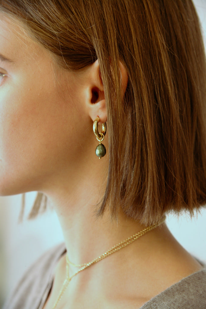 The removable pendants allow for versatile styling: wear the hoops on their own for a simple, contemporary look, or add the pearls for a more refined and distinctive touch.
