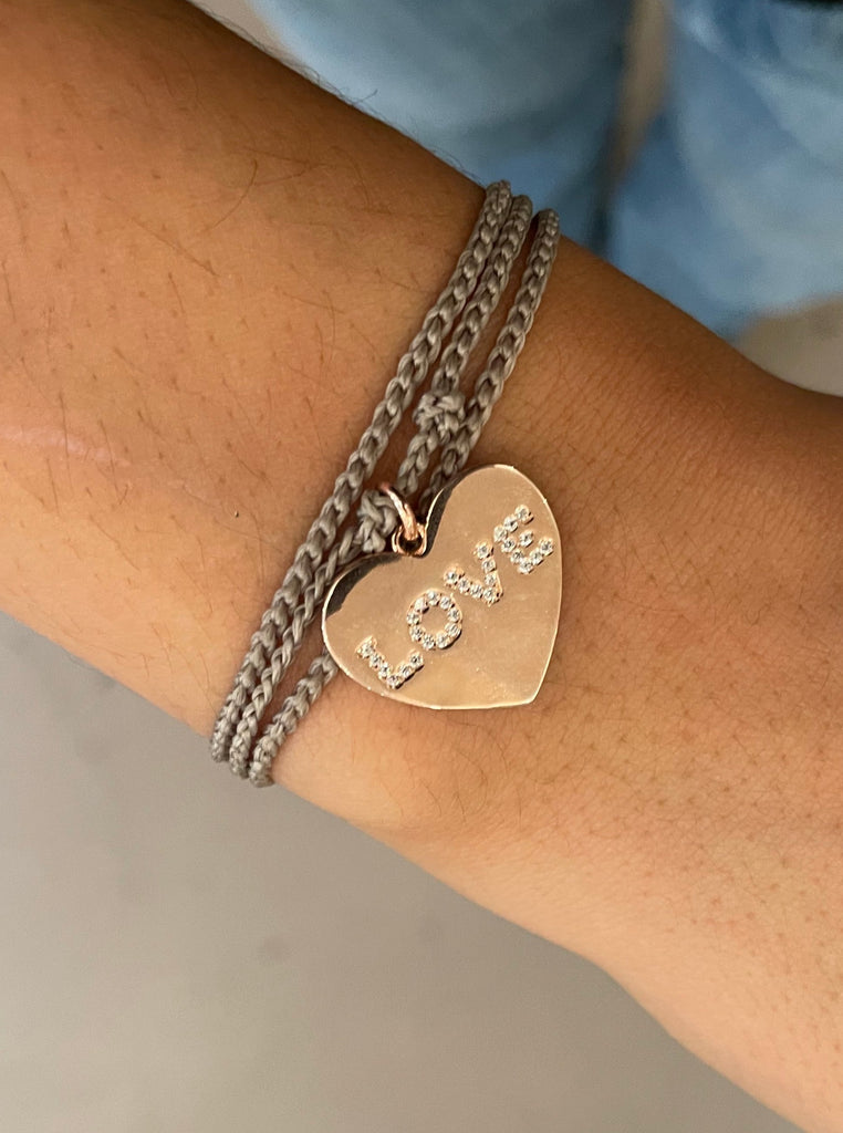 This stunning "Love" crochet bracelet features a delicate charm and romantic heart, crafted from a combination of glitter and rose gold silver. Perfect for any occasion! You can either wrap it on your wrist for three times or wear it as a chocker.