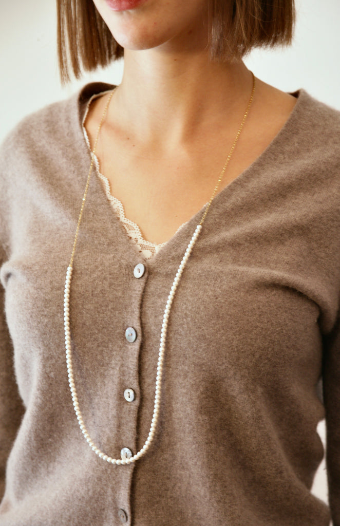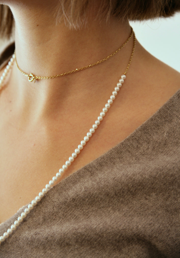 Materials: coated pearls + silver gold 18kt plated rolò chain