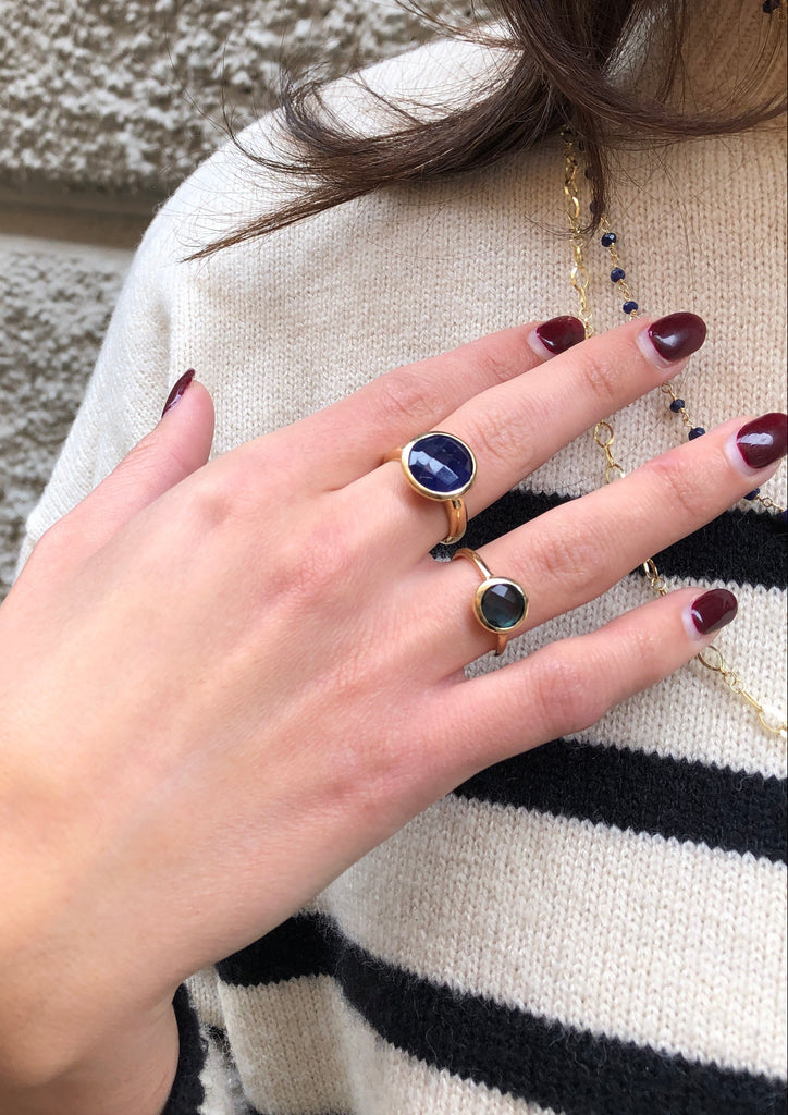 L’anello Éclat con pietra London Blue naturale, tonda e sfaccettata, è realizzato con base aperta regolabile per garantire comodità e adattabilità. Il colore profondo e armonioso della pietra è valorizzato da un design essenziale, che ne mette in risalto le sfumature senza appesantirne la forma. Un gioiello versatile e raffinato, pensato per chi apprezza dettagli puliti e una bellezza naturale immediata.