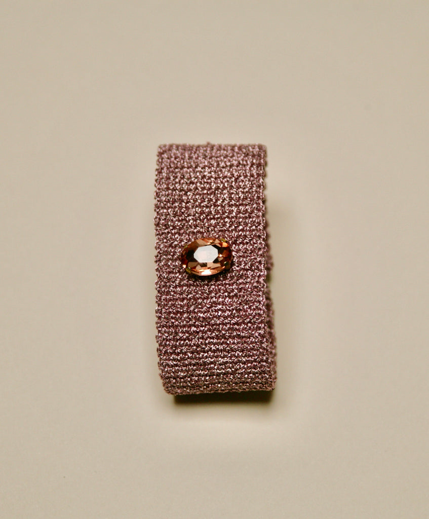 Bracciale artigianale realizzato all’uncinetto con filo lamé rosa ultra-sottile, dal raffinato effetto tessuto luminoso. Un elemento sfaccettato color rosa acceso impreziosisce il design, aggiungendo un tocco di brillantezza e modernità. Perfetto per valorizzare sia look eleganti sia outfit quotidiani. Essendo un prodotto fatto a mano, si consiglia di maneggiarlo con cura e delicatezza.