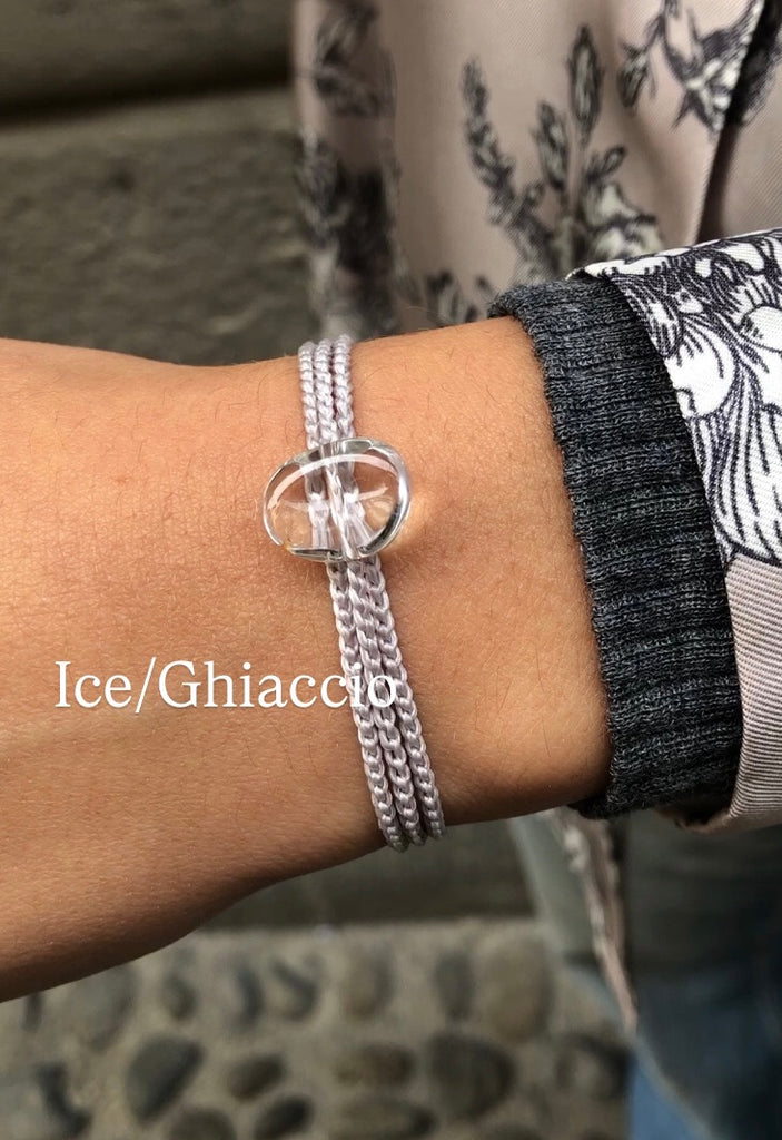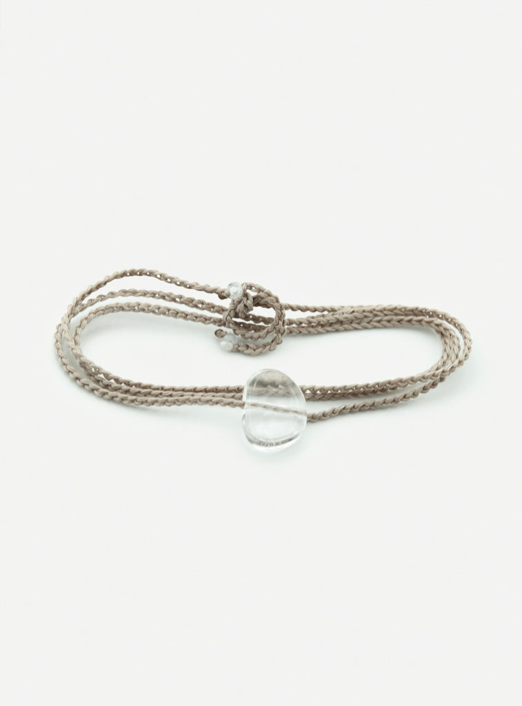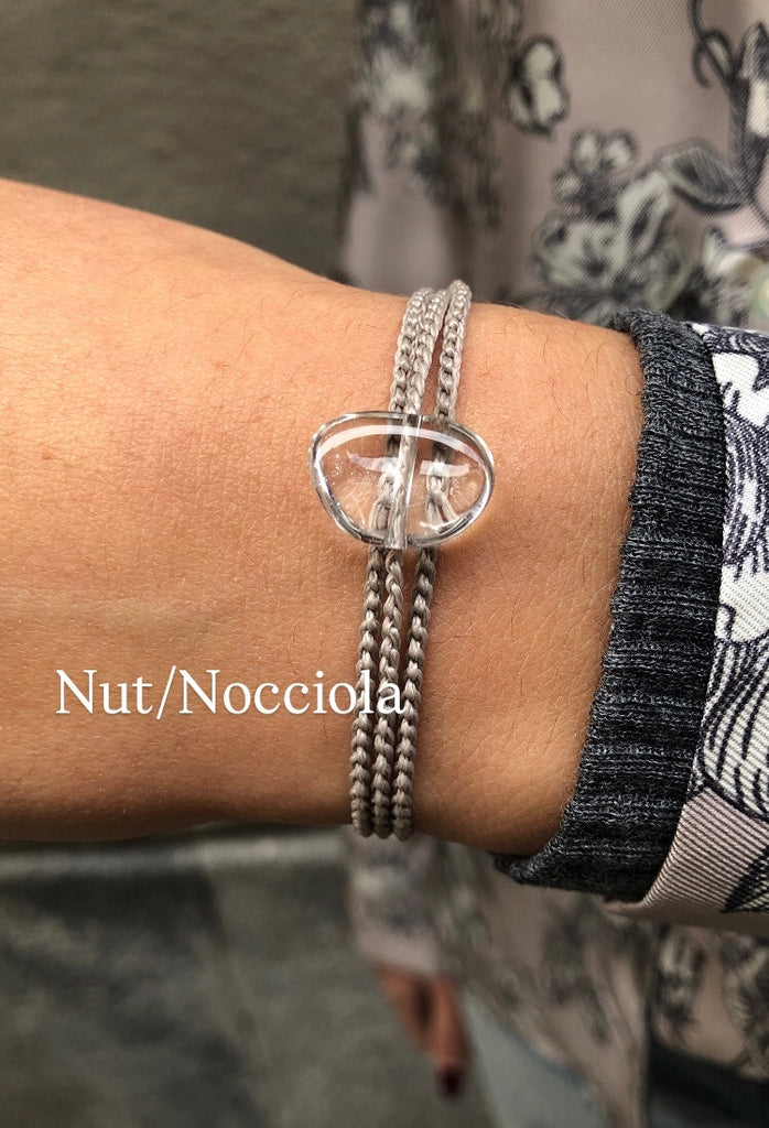 Delicate and enveloping, this bracelet is handmade using the crochet technique with a fine thread that wraps three times around the wrist, creating a harmonious and lightweight effect. At the center shines a raw rock crystal in a “naked stone” style, left in its natural form to highlight its unique and authentic beauty.