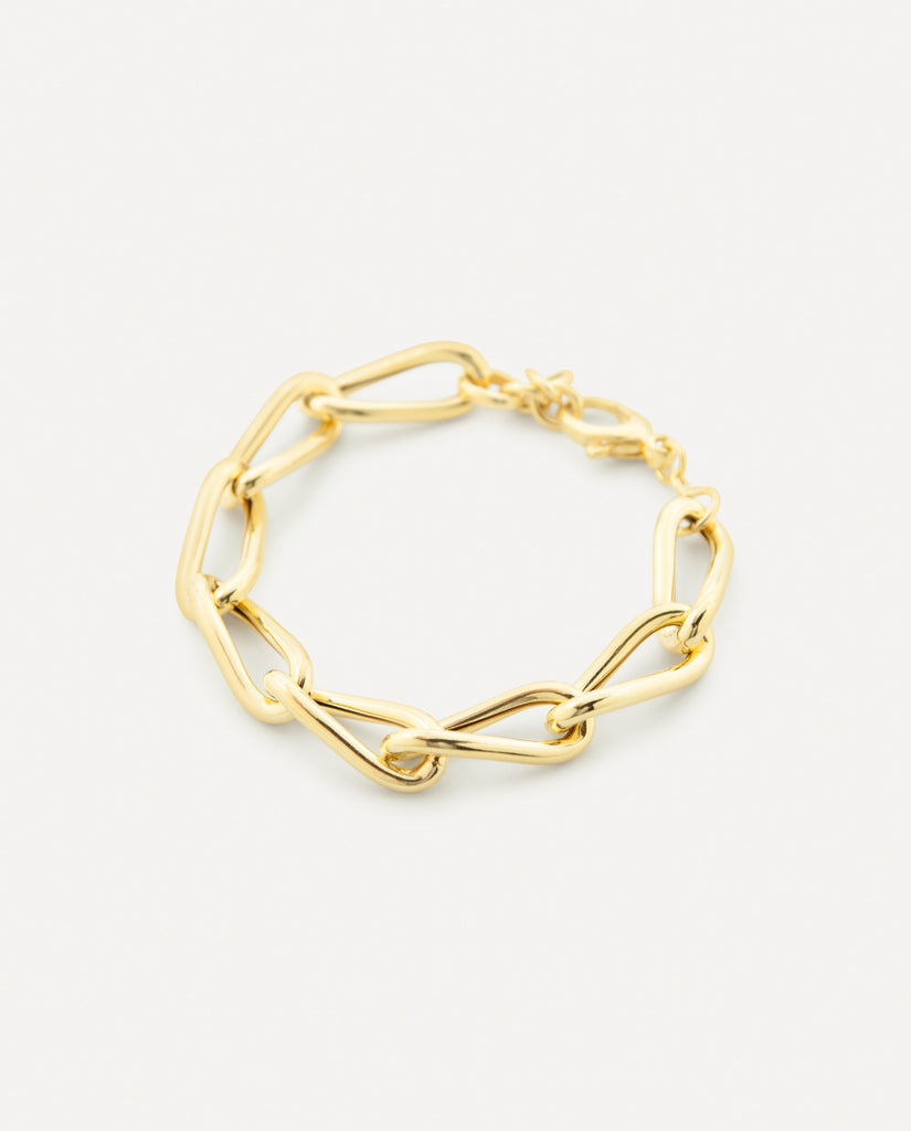 The distinctive design of the Flow bracelet is instantly eye-catching. Each individual chain link has been expertly crafted to create an elongated, tapered shape, recalling a delicate "flow" or a stylized teardrop.